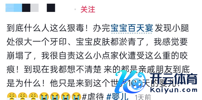 2025年11月中旬,甘肃一位宝妈在酬酢平台发布的一段视频,让多数家长揪心不已。视频里,刚满三个月的婴儿小腿上,一个通晓的牙印周围泛着大片淤青,惊心动魄。这位宝妈哽噎着论说,这是孩子百日宴截止后发现的景象,而本日厚爱照拂孩子的奶奶,却无法说清是谁下的手。事件曝光后,不仅激发网友对“生疏东说念主斗争婴儿规模”的热议,更让家庭照护拖累的话题成为焦点。