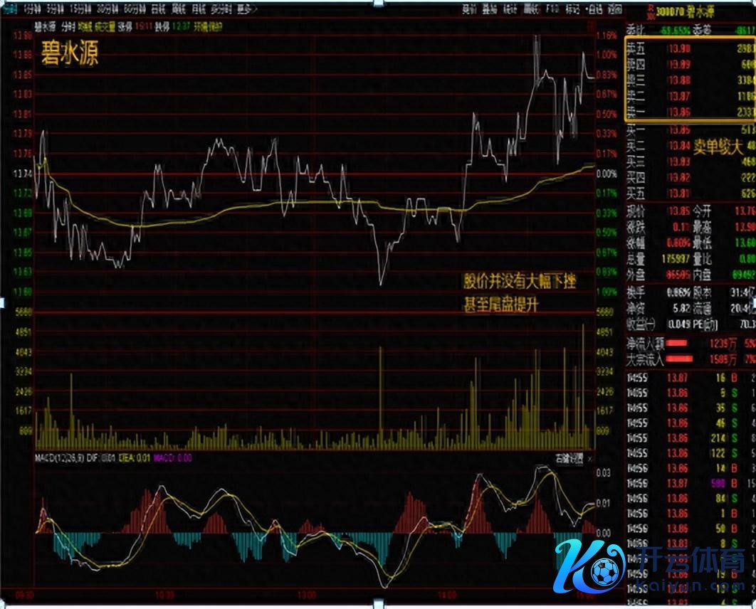 庄家出货时在卖盘上是不会挂大卖单的,下方买单反而大,披露委比比拟大,酿成买盘多的假象,但上方某价位却有吃不完的货。或成交明细中常有大卖单卖出,而买单却很弱,导致价钱下千里,无法上行。