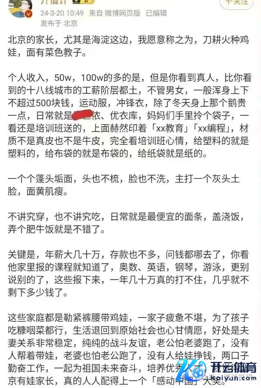 可怕的是,鸡娃可不是一个纰漏活,也少量也未低廉。那些补习班老贵了,还有多样耗钱的有趣深爱,一年花几十万鸡娃都大有东说念主在。北京大几十万收入的中产,活得灰头土面的,钱都拿去鸡娃了。