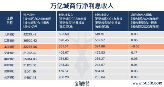 此外,净利息收入方面,上海银行该收入由 2023 年的 351.64 亿元下滑至 2024 年的 324.86 亿元,在万亿级城商行中,这个数据独一上海银行出现下滑。