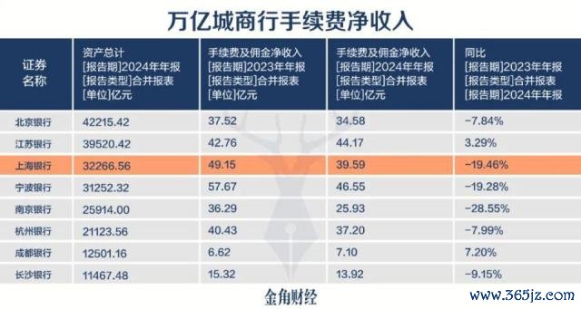 2023-2024 年,其该业务的数据由 49.15 亿元下滑至 39.59 亿元,跌幅为 19.46%,在万亿级城商行中,这个跌幅仅次于南京银行的 28.55%。