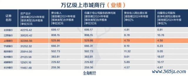 但功绩增速方面,上海银行比较同业并不睬思。其中,营收增速 4.79%,在万亿级(总金钱规模大于 1 万亿元)城商行中名次倒数第二,仅高于长沙银行的 4.57%;归母净利润增速则为 4.5%,一样在万亿级城商行中名次倒数第二,仅高于北京银行的 0.81%。