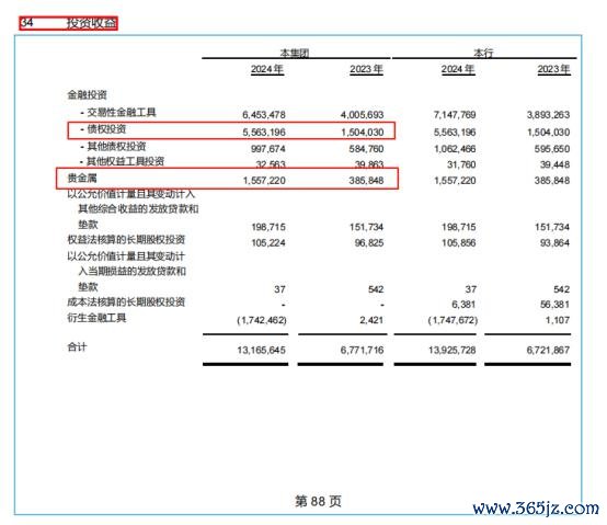 具体来看,投资收益增长得比较夸张的,一个是债权投资,由 2023 年的 15.04 亿元大增至 2024 年的 55.63 亿元;另一个则是贵金属,同期由 3.86 亿元大增至 15.57 亿元。