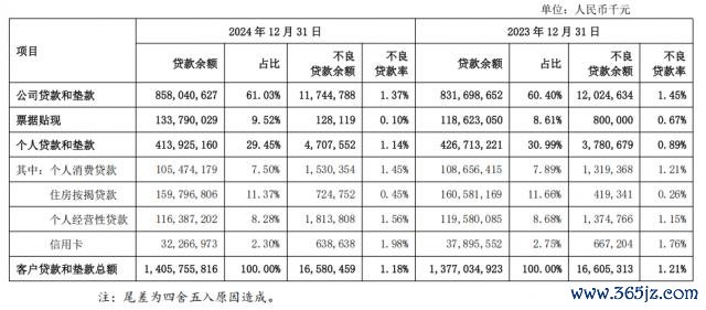 但在 2024 年,上海银行的个东谈主贷款不良率出现上升。抑止年末,个贷不良贷款余额为 47.08 亿元,较岁首加多约 9.3 亿元 ; 个贷不良贷款率为 1.14%,较岁首上升 25bps。其中,信用卡贷款不良率最高,为 1.98%,较岁首上升 22bps。