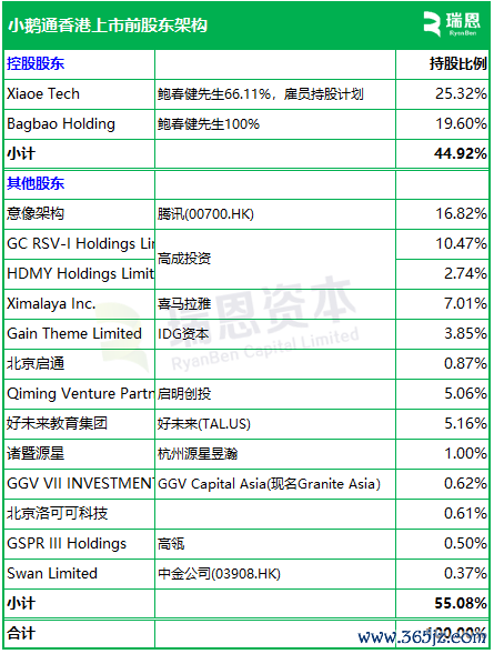 鲍春健先生,通过Bagbao Holding执股19.60%,通过规矩Xiaoe Tech执股25.32%,悉数执股约44.92%,为控股鼓舞。