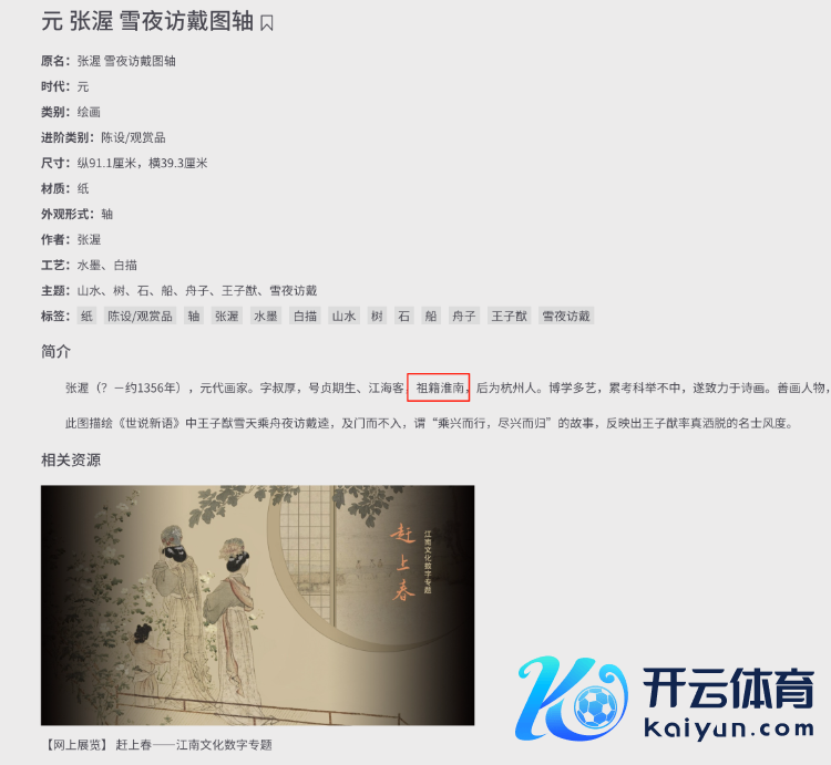 上海博物馆官网上张渥另一幅作品下的作家简介,则莫得“江苏淮南”的提法。网页截图