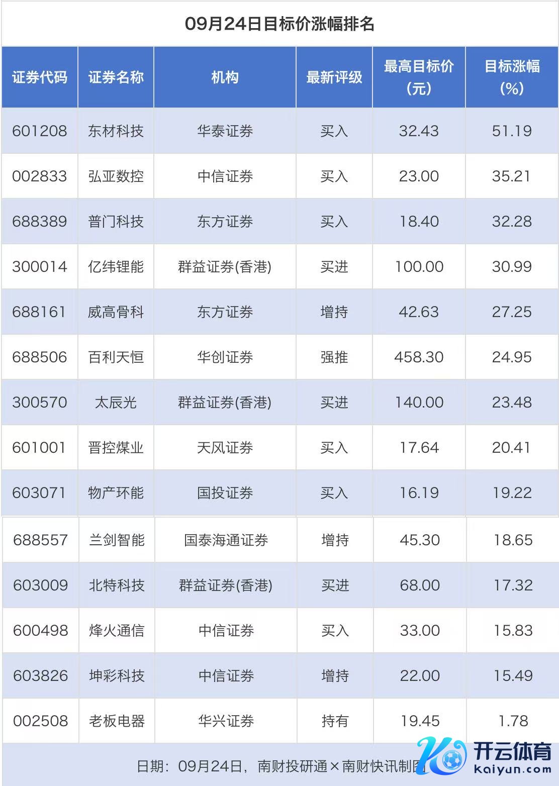 南财投研通数据露出,9月24日有26家上市公司得到券商保举开云·kaiyun体育,其中券商给以上市公司指标价共14次,按最新收盘价操办,指标价涨幅名次居前的公司有东材科技、弘亚数控、普门科技,指标价涨幅分辨为51.19%、35.21%、32.28%,分辨属于塑料、专用建立、医疗器械行业。
