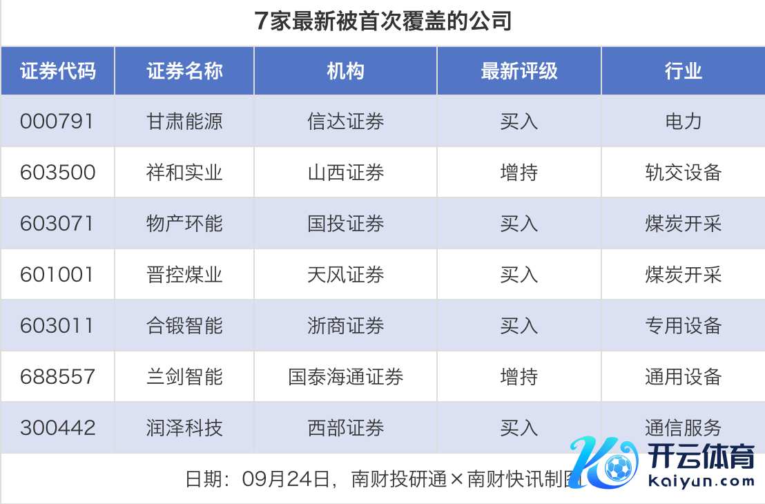 初次粉饰方面,9月24日券商共给出了7次初次粉饰开云·kaiyun体育,其中甘肃动力赢得信达证券给以“买入”评级,和顺实业赢得山西证券给以“增握”评级,物产环能赢得国投证券给以“买入”评级,晋控煤业赢得天风证券给以“买入”评级,合锻智能赢得浙商证券给以“买入”评级。
